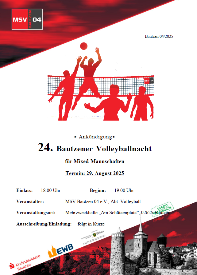 Ankündigung der 24. Volleyballnacht des MSV Bautzen
