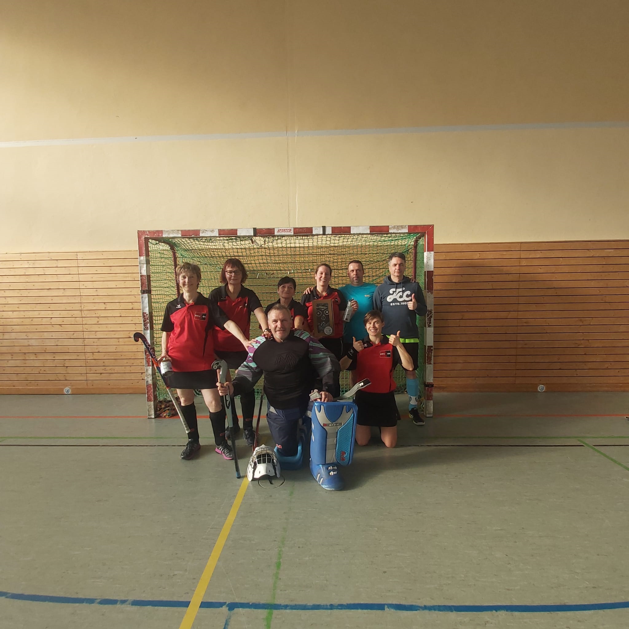 Unser neuer Torwart Akki, seit letztem Jahr Oktober mit dabei, bestritt bis dahin noch nie ein Hockey Turnier und war sozusagen ein Anfänger, was das Hockey spielen betrifft.