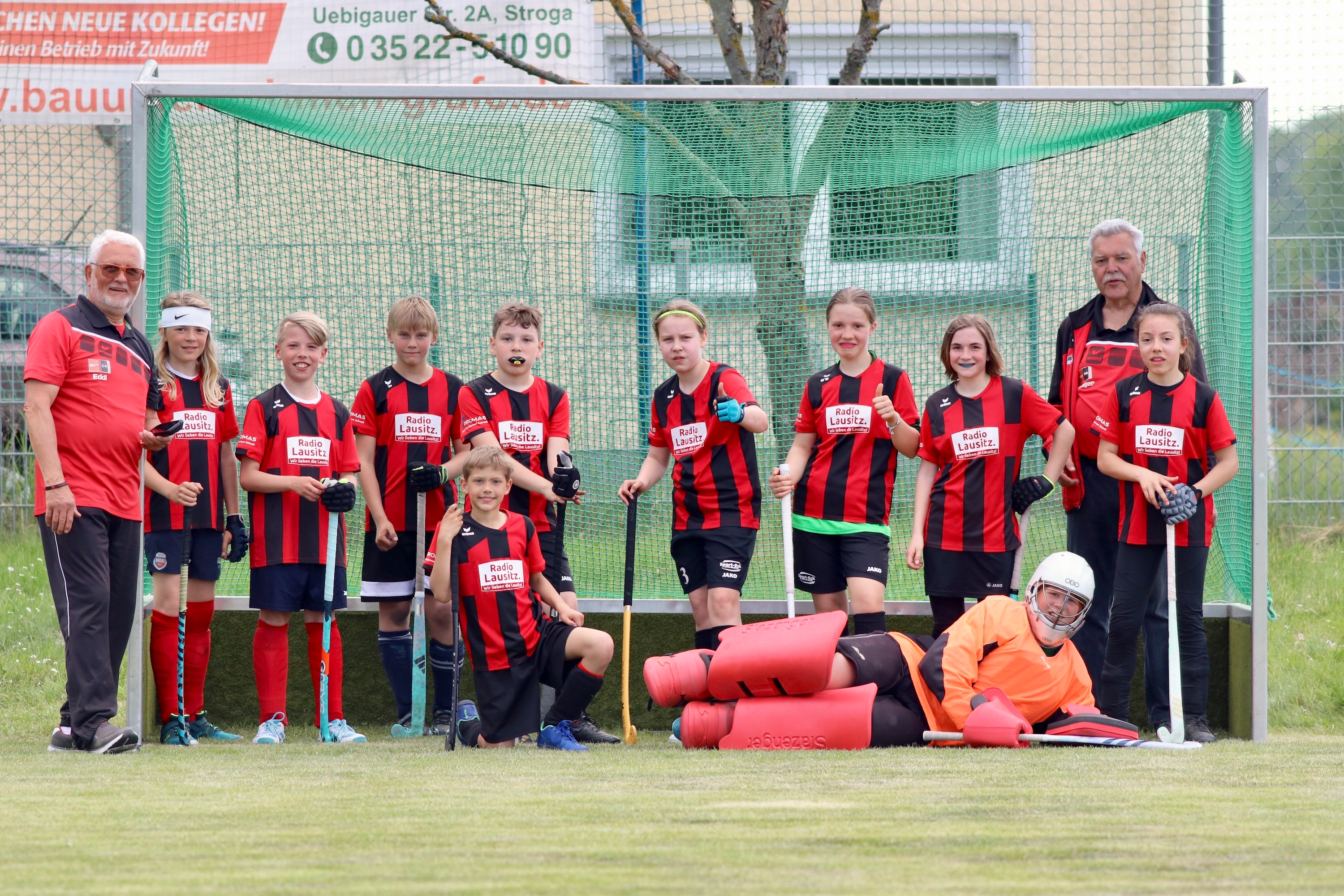 Der erste Spieltag in Freiberg endete zwar mit zwei Niederlagen gegen Freiberg (0:2) und Cottbus (0:7) aber den Spaß am Hockey verloren die Mädchen und Jungs nicht.