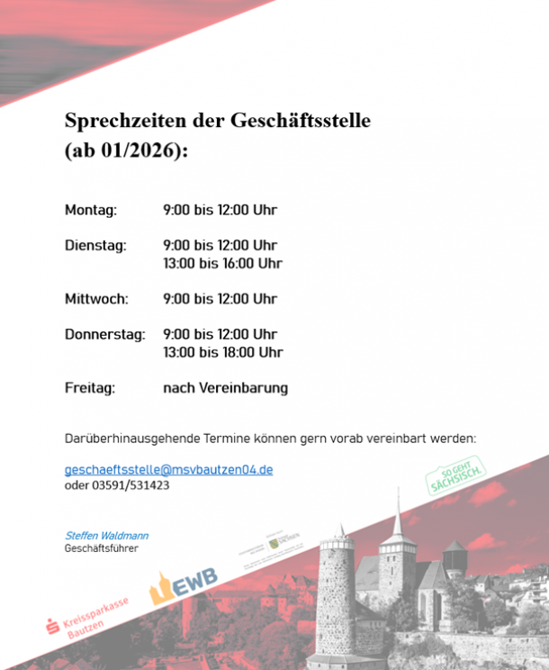 Sprechzeiten der Geschäftsstelle 2026