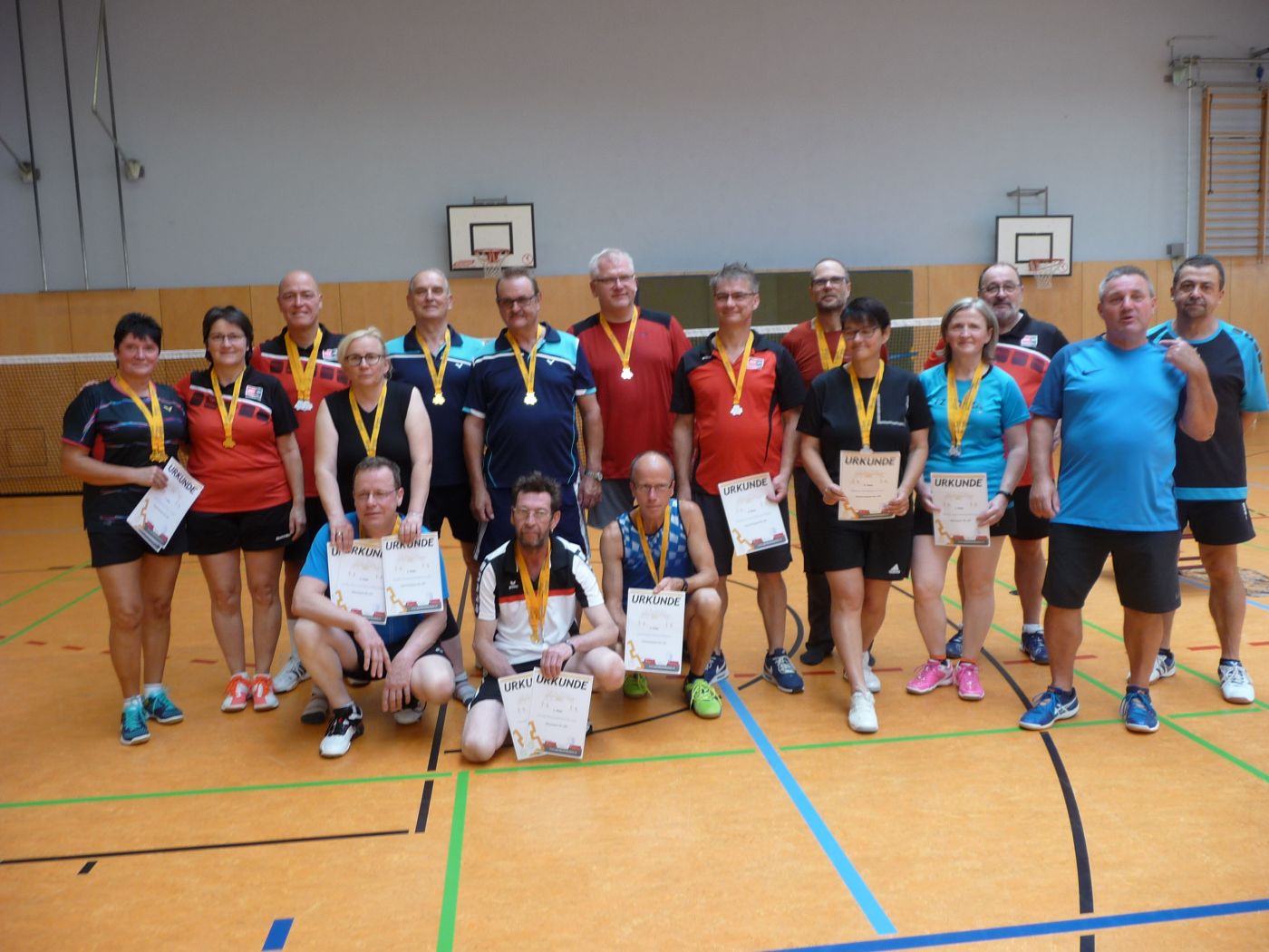 Durch die kurzfristige Absage einiger Spieler wurde der Turnierverlauf etwas durcheinander gebracht, was aber der guten Laune und Stimmung keinen Abbruch tat. Begonnen wurde mit den Mixdoppel der Altersklasse o50, hier spielte jeder gegen jeden, wobei sich am Ende Michael Kaiser/Sigrun Jäger (Bischofswerda) gegen Ralf Treuter/Kathrin Estel (Bautzen/Bischofswerda) durchsetzten. Spannend ging es um die Plätze 3 - 5 zu, wobei am Ende die Satz- und Spielpunkte den Ausschlag um den dritten Platz zugunsten von Steffen und Astrid Herrmann (Gaußig) gaben. Das Mixdoppel der AK o60 gewannen Gerald Bücher/Petra Tussnat aus Demitz-Thumitz. Ebenfalls spannend und hart umkämpft waren die Doppel sowohl bei Damen als auch bei den Herren. Erst im dritten Satz wurde das Damendoppel der o50 entschieden, glücklicher und verdienter Sieger wurden Petra Tussnat/Gudrun Lenke (Demitz-Thumitz/Bautzen), den zweiten Platz holte sich das Bischofswerdaer Doppel Kathrin Estel/Sigrun Jäger.