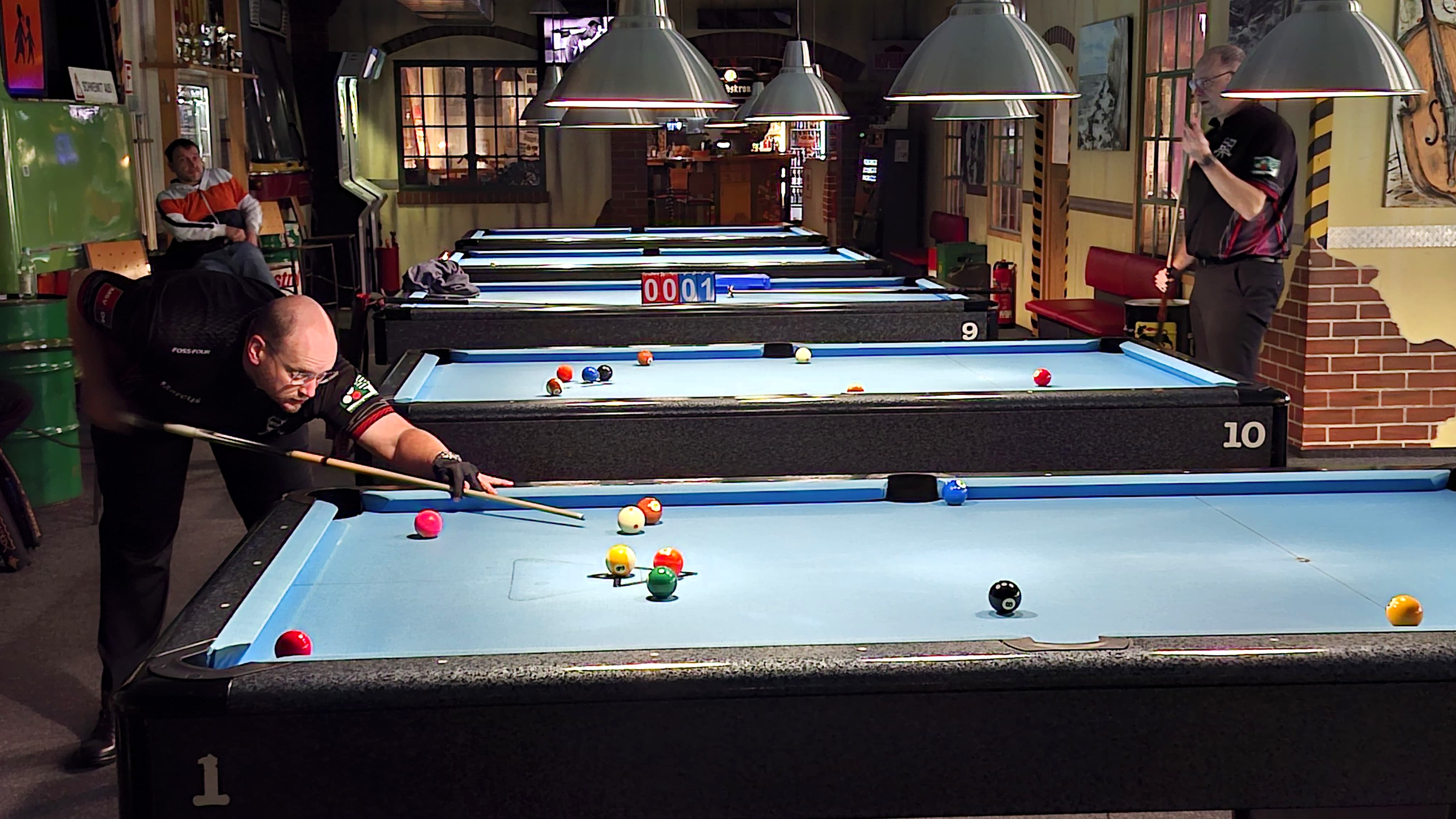 Zuhause in der Billardgaraga trat die 2. Mannschaft krankheitsbedingt etwas ersatzgeschwächt gegen die neu formierte 2. Mannschaft von BC Joes Dresden an. Letztere hatten ihren ersten Einsatz, weil sie den 1. Spieltag kampflos geschenkt bekommen haben. Vielleicht war das der Grund, dass es ein paar Unstimmigkeiten ob der Spielberechtigung eines Spielers gab. Das wurde jedoch nach dem Fair-Play-Prinzip während des Spieltags gelöst, sodass das rein sportliche Ergebnis zum Schluss zählte. Es war ein Kampf auf Augenhöhe, wobei die Dresdener nach der 2. Runde mit 3:5 die Oberhand hatten. Mit Kampfgeist holten jedoch Norbert, Marcus, René und Nick zum Schluss auf. Nick behielt seine weiße Weste und steht wieder allein an der Spitze der Spielerrangliste der Landesliga. Und Marcus behielt im entscheidenden 9-Ball gegen Feras im Hill-Hill die Nerven und sicherte mit einem Aus-Tisch das 6:6 Unentschieden.