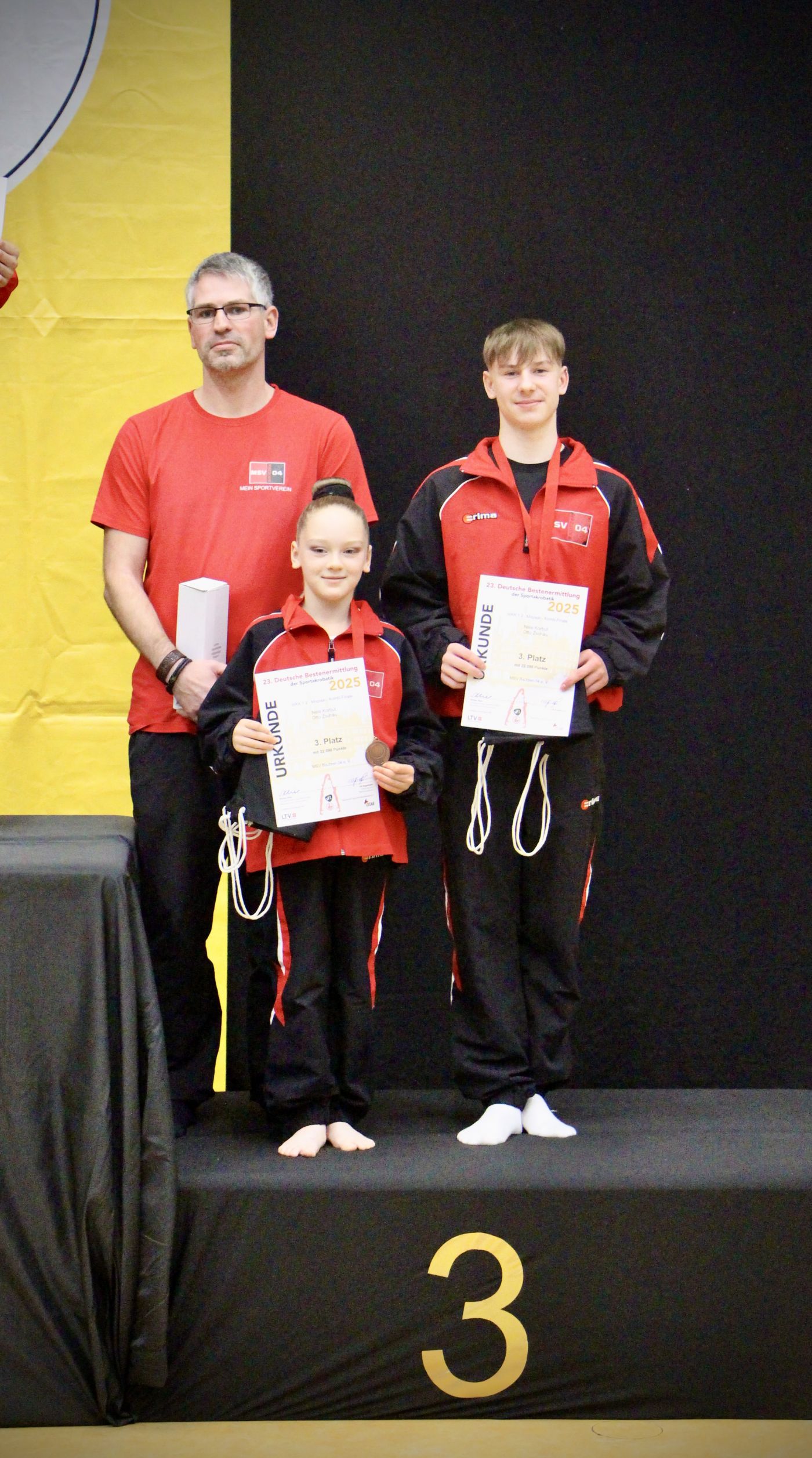 Am Sonntag traten sie erneut stark auf. Doch das am Vortag drittplatzierte Paar des SV Warnemünde (Mecklenburg-Vorpommern) konnte seine Darbietung aus der Vorrunde noch übertrumpfen und zog dicht an den beiden vorbei. Nach kurzer Enttäuschung über den Rangtausch, stellte sich jedoch schnell ein Hochgefühl über die gewonnene Bronzemedaille ein.