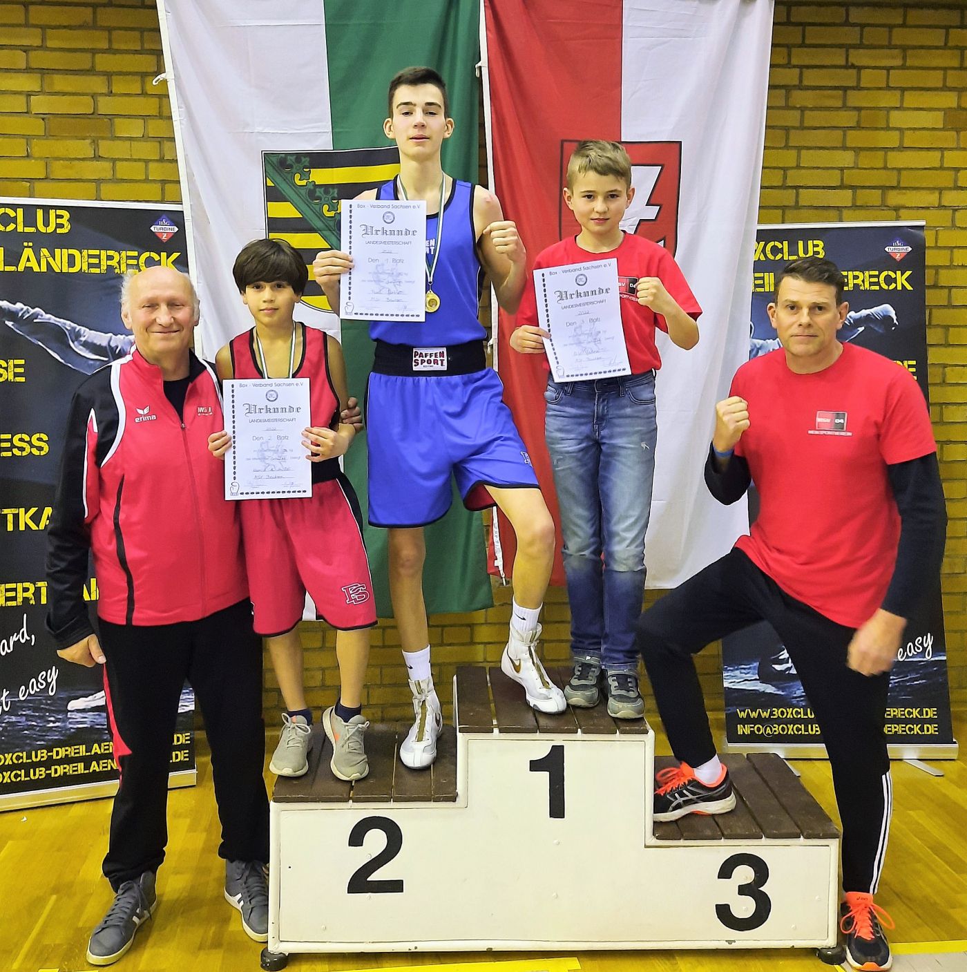 Am 9. und 10. April fanden die Landesmeisterschaften des Box-Verbandes-Sachsen in Zittau statt. Das kleine, aber schlagkräftige MSV-Nachwuchsteam schlug sich dabei sehr beachtlich. Für einige der jungen Sportler war es der erste große Wettkampf-Auftritt. Da war die Aufregung natürlich ziemlich groß. Die Trainer Michael Steglich und Torsten Gärtner sind sehr zufrieden mit den Leistungen ihrer Schützlinge.Gold und somit den Landesmeistertitel erkämpften sichPaul Gärtner (Junioren) und Ragnar Wölfer (Schüler).