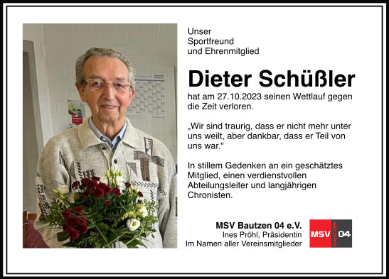 Die Trauerfeier findet am 21. November 2023 um 13:30 Uhr in der Kapelle auf dem Taucherfriedhof statt. Die Urnenbeisetzung erfolgt im engsten Familienkreis zu einem späteren Zeitpunkt.