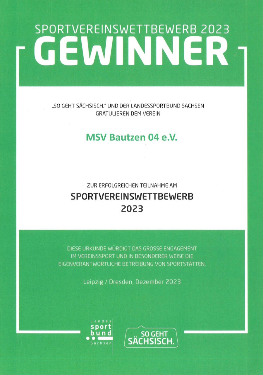 wir sind einer der Gewinner des Sportvereinswettbewerbes 2023. Die Auszeichnung würdigt das große Engagement im Vereinssport und in besonderer Weise die eigenverantwortliche Betreibung von Sportstätten. Die Verleihung ist mit einer finanziellen Zuwendung von 1000 Euro verbunden.
