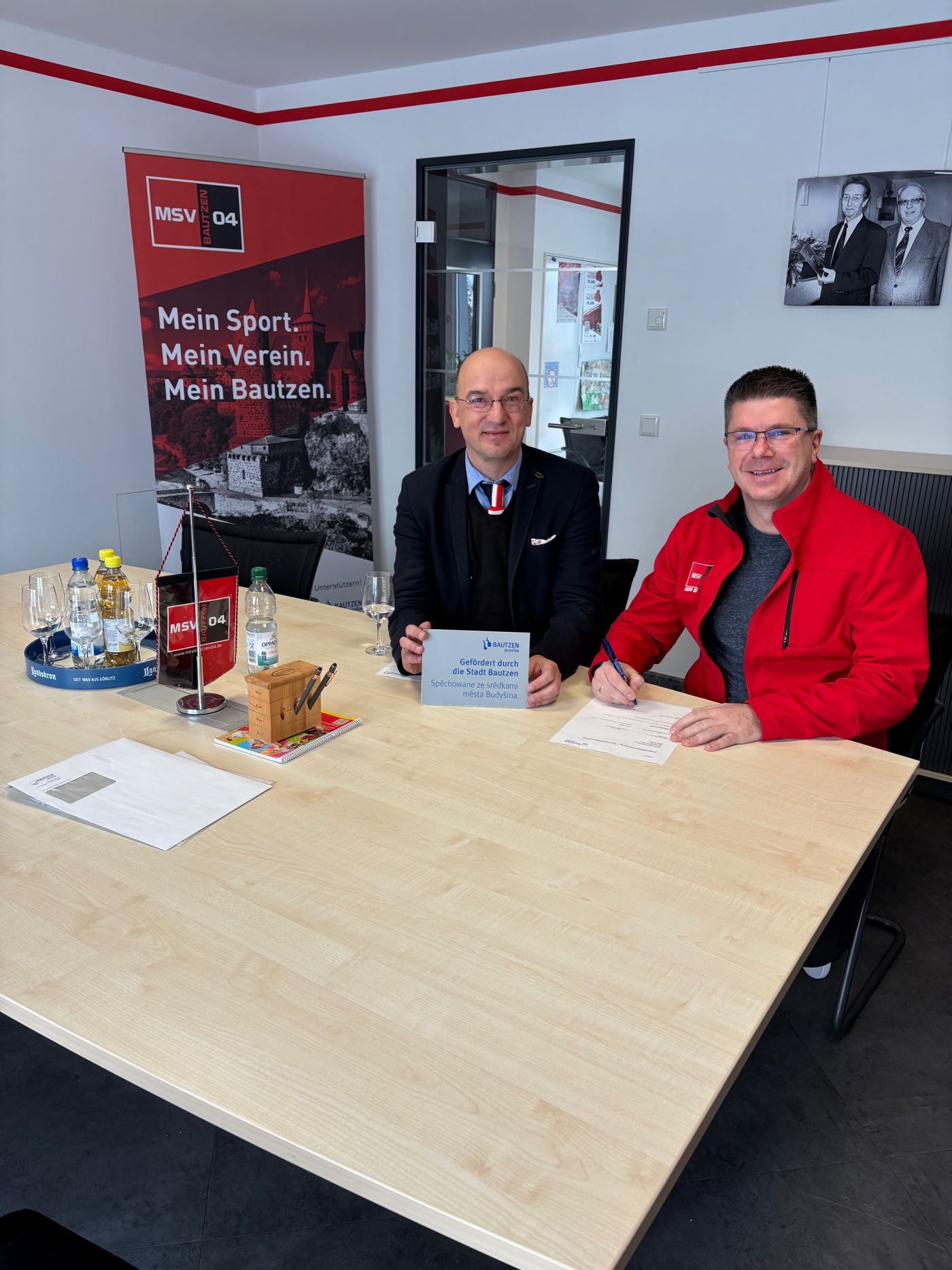 Am frühen Freitag Morgen haben wir Besuch durch den Finanzbürgermeister Hr. Dr. Robert Böhmer bekommen. Dieser überreichte uns einen Fördermittelbescheid, für die energetische Sanierung des Sportparkes.